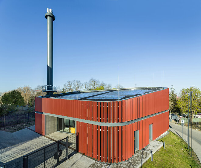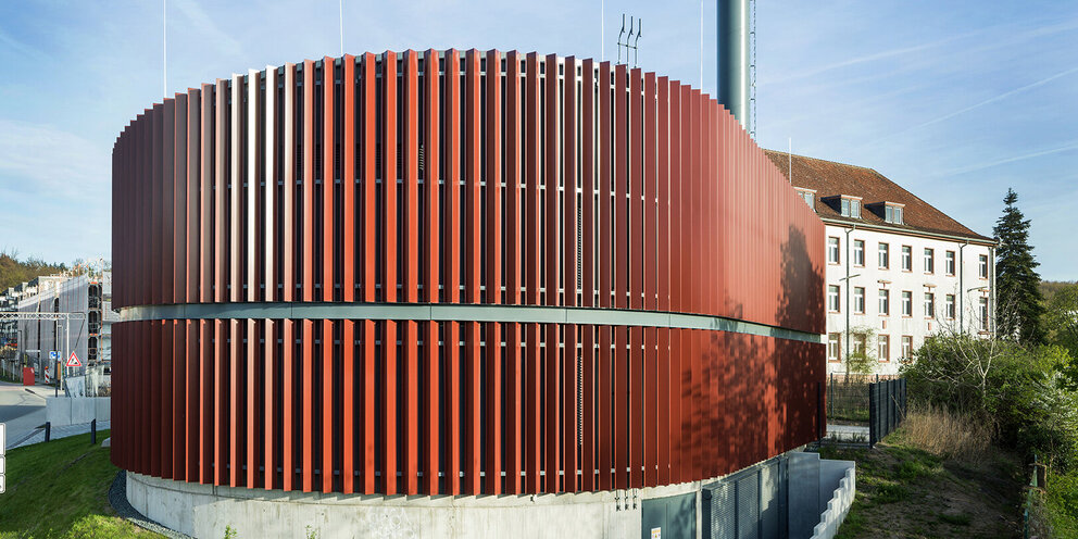 To supply the new Ludwigshöhviertel residential area in the south of Darmstadt, entega AG is building a new energy center on a prominent site at the entrance to the neighborhood. The site is located at an acute angle between Ludwigshöhstraße and the junction with Granitstraße.