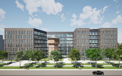 The M600 office and laboratory building is being constructed on the Görzhäuser Hof site of CSL Behring GmbH in Marburg. The office and laboratory areas are grouped around a four-storey atrium. The atrium takes over the function of the representative development and creates meeting zones for the employees. The building unites the R&D departments and provides a modern working environment for 600 employees.
