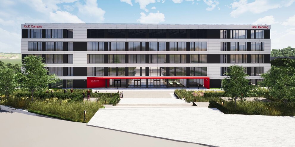 The M600 office and laboratory building is being constructed on the Görzhäuser Hof site of CSL Behring GmbH in Marburg. The office and laboratory areas are grouped around a four-storey atrium. The atrium takes over the function of the representative development and creates meeting zones for the employees. The building unites the R&D departments and provides a modern working environment for 600 employees.