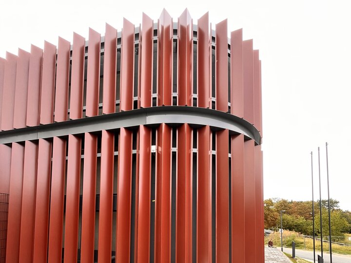 Wir haben die Gelegenheit genutzt und 3 unserer Baustellen „vor Ort“, also in Darmstadt zu besichtigen. Hier zu sehen: Die Fassade der Energiezentrale im Ludwigshöhenviertel.