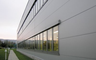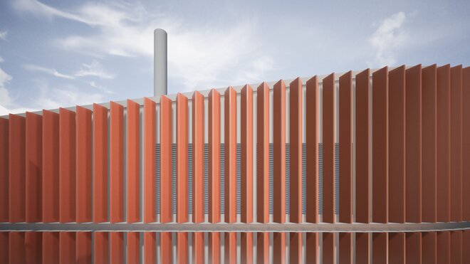 Der Rotbraunton der Fassade stellt eine abstrakte Reminiszenz an die klassischen Bauten des Industriezeitalters dar, während die Form und Verwendung des Materials klar erkennbar zeitgenössisch sind und dem Gebäude einen eigenständigen Charakter verleihen.