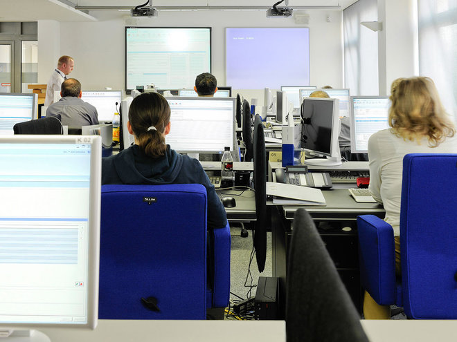 Für die Fraport AG Frankfurt wurde ein bestehender Großraum zu einer Notfallinformationszentrale mit 24 Callcenter-Arbeitsplätzen und modernster Visualisierungstechnik umgebaut.