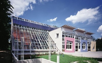 Ausgehend von einem gewonnenen Wettbewerb wurde auf einem Eckgrundstück im Bezirk Schöneberg inmitten gründerzeitlicher Wohnbebauung eine neue Kindertagesstätte mit Hort für 200 Kinder errichtet.